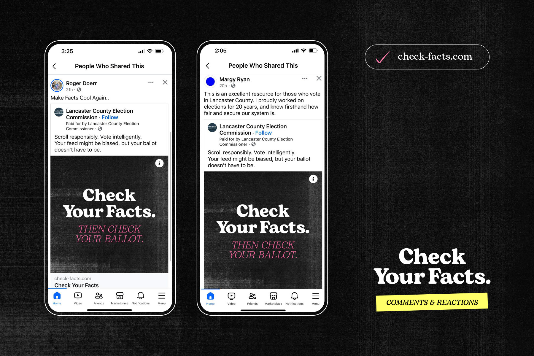 For all of us at Eleanor, the “Check Your Facts” campaign was a lesson in the power that objective truth and compelling creative can have. We’re so proud to have worked with the Lancaster County Election Commission on this project, and we look forward to seeing how our industry can affect change in the years to come.