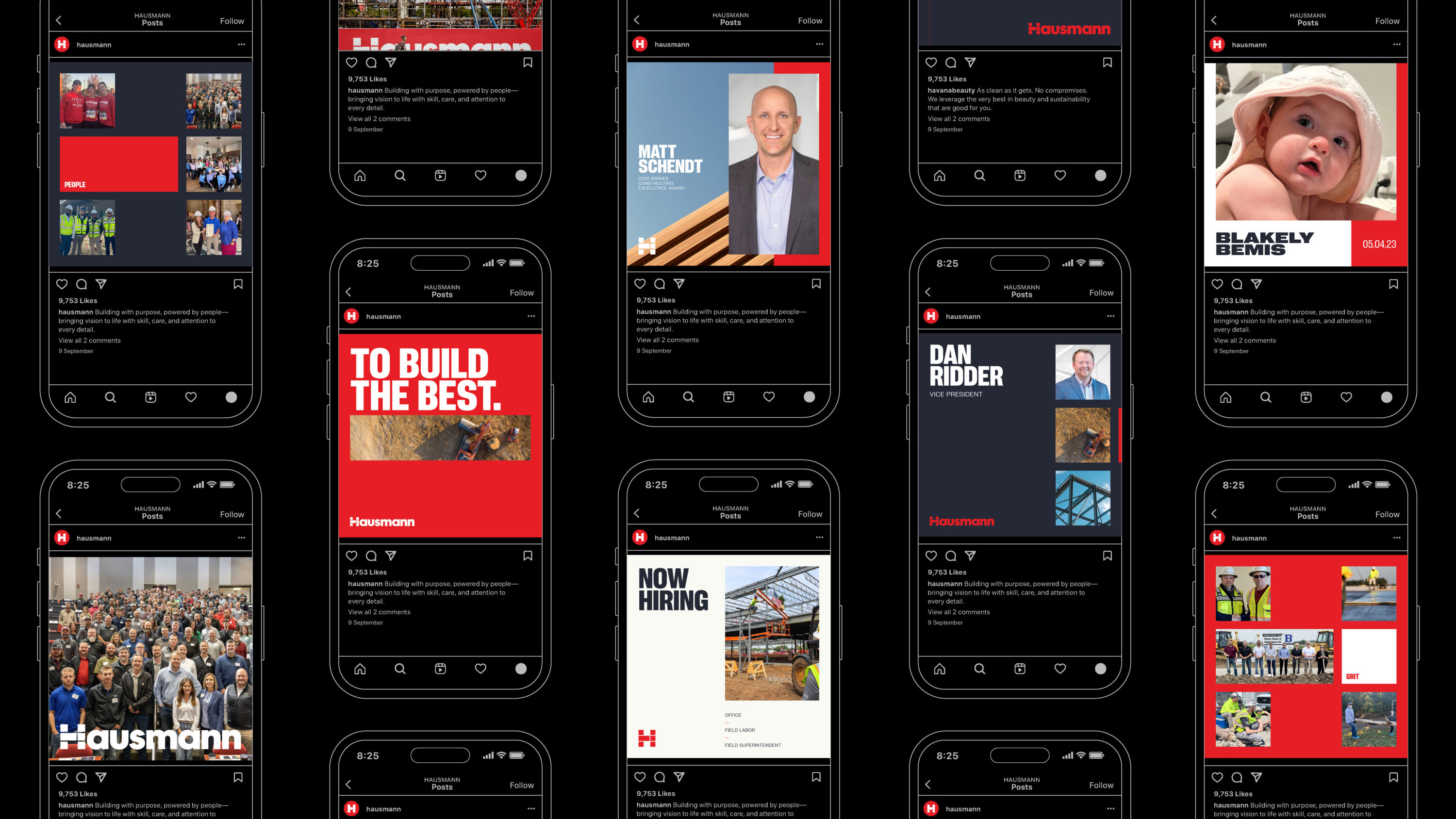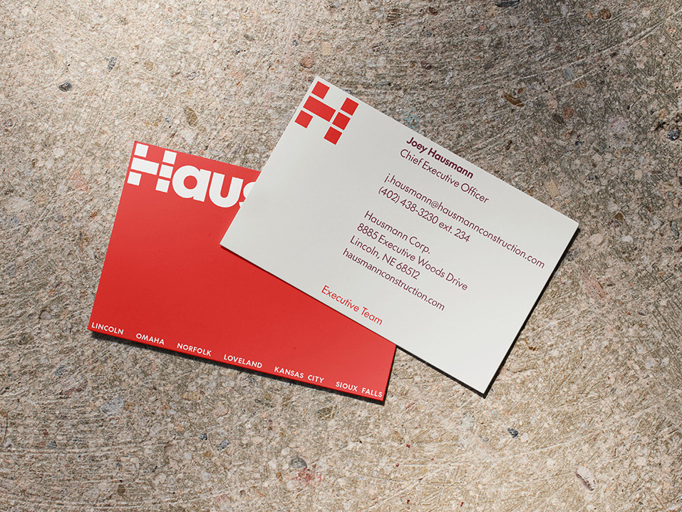 Hausmann’s challenge was clear: an outdated brand from 2003 no longer reflected the caliber of work they delivered or the size of the projects they undertake on a national scale. That’s where Eleanor stepped in. Hausmann came to Eleanor for a fresh, modern identity—one that would elevate their presence, signal confidence, and position them as a credible, competitive partner at both regional and national levels. Hausmann leadership cited midcentury European industrial design as aspirational and expected the design process to reflect that influence through clarity, cleanliness, and visual power. We built a brand that the team can see, trust, and represent with pride.